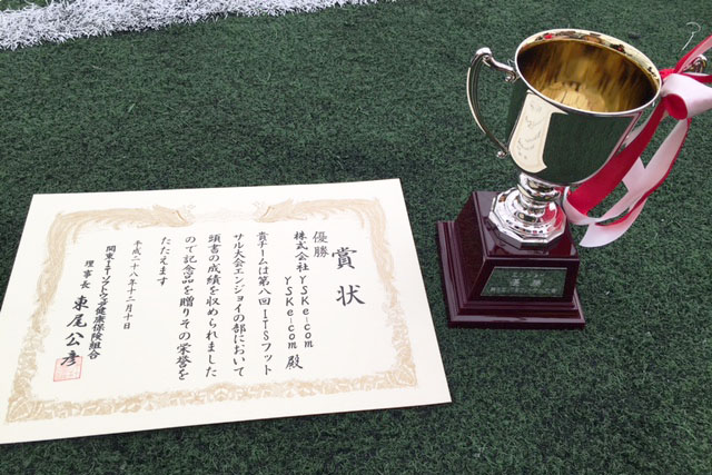 全国の250チームが参加しました「第8回ITSフットサル大会」のエンジョイの部で YSK e-comが予選から勝ち進み、先日12/10(土)に行われました決勝で見事優勝を果たしました。