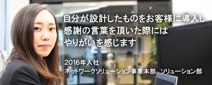業務内容としましては、サーバ構築、端末・ネットワーク機器の設置や設定、導入後の保守作業を行っています。最近は設計などの上流工程に携わる機会も増えてきました。自分が設計したものを成果物としてお客様に導入し、感謝の言葉を頂いた際にはやりがいを感じます。