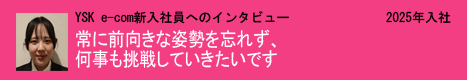 YSK e-comのリーダ・先輩社員へのインタビュー、新入社員の入社しての意気込みを掲載しています。社内の雰囲気や入社しての感想、実際の仕事の内容などを話しています。