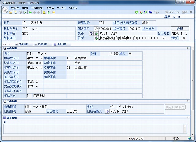 市町村独自の事業にも対応できるよう、台帳作成に汎用性をもたせております。支払の有無、各種事由等の設定が可能です。