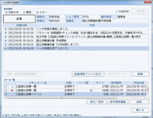 処理実行画面 |