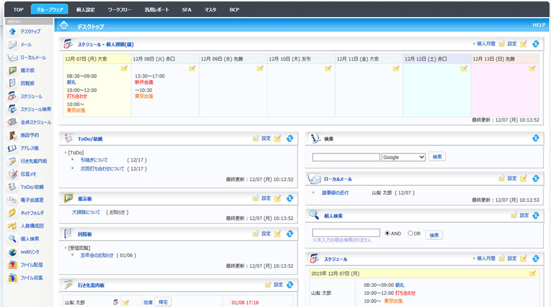 ■安心のセキュリティ通信の暗号化は勿論、グループウェア内での「ローカルメール」機能を利用すれば情報漏洩の心配は不要です。