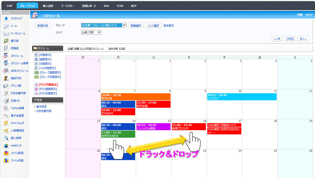 ■組織変更も楽々年度毎の人事異動や組織変更も、事前に設定しておくことができます。
